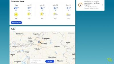 Wśród wielu opcji, które nam oferuje, pozwala nam sprawdzać cogodzinne prognozy pogody, na następne 15 dni, aktualne warunki pogodowe, bez względu na to, gdzie jesteśmy w okolicy, a także możliwość przeglądania map pogodowych. Jakby wszystko to wydawało się mało, aplikacja pozwala zarządzać wszelkiego rodzaju alarmami, które będą nas informować o warunkach pogodowych w dowolnym momencie.
